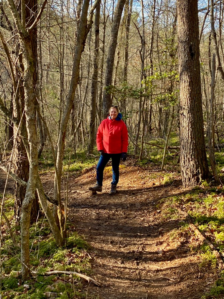 ASHEVILLE, N.C. — When we left Northern Virginia 8 days ago we headed straight south 364 miles to Sneads Ferry, NC, about an hour up the coast from Wilmington. We were deluged with rain there but so far we’ve managed to escape the ice and snow covering most of the rest of the nation. Yesterday we visited friends and a nephew and his family in Charlotte. For the next few days we’re staying at an RV park near Asheville, NC, where we plan to tour the famous Biltmore Estate on Thursday. Built by George Vanderbilt II, it’s the largest private estate in America. Rain and ice are predicted here tomorrow, which may delay our departure later this week for Tennessee. After arriving in Asheville early this afternoon, we hiked 2.5 miles through Richmond Hill Park (see Elizabeth on the trail) and ate dinner at the Jerusalem Garden Café downtown. Pray for our safety when we do hit the road again, likely on Saturday.
