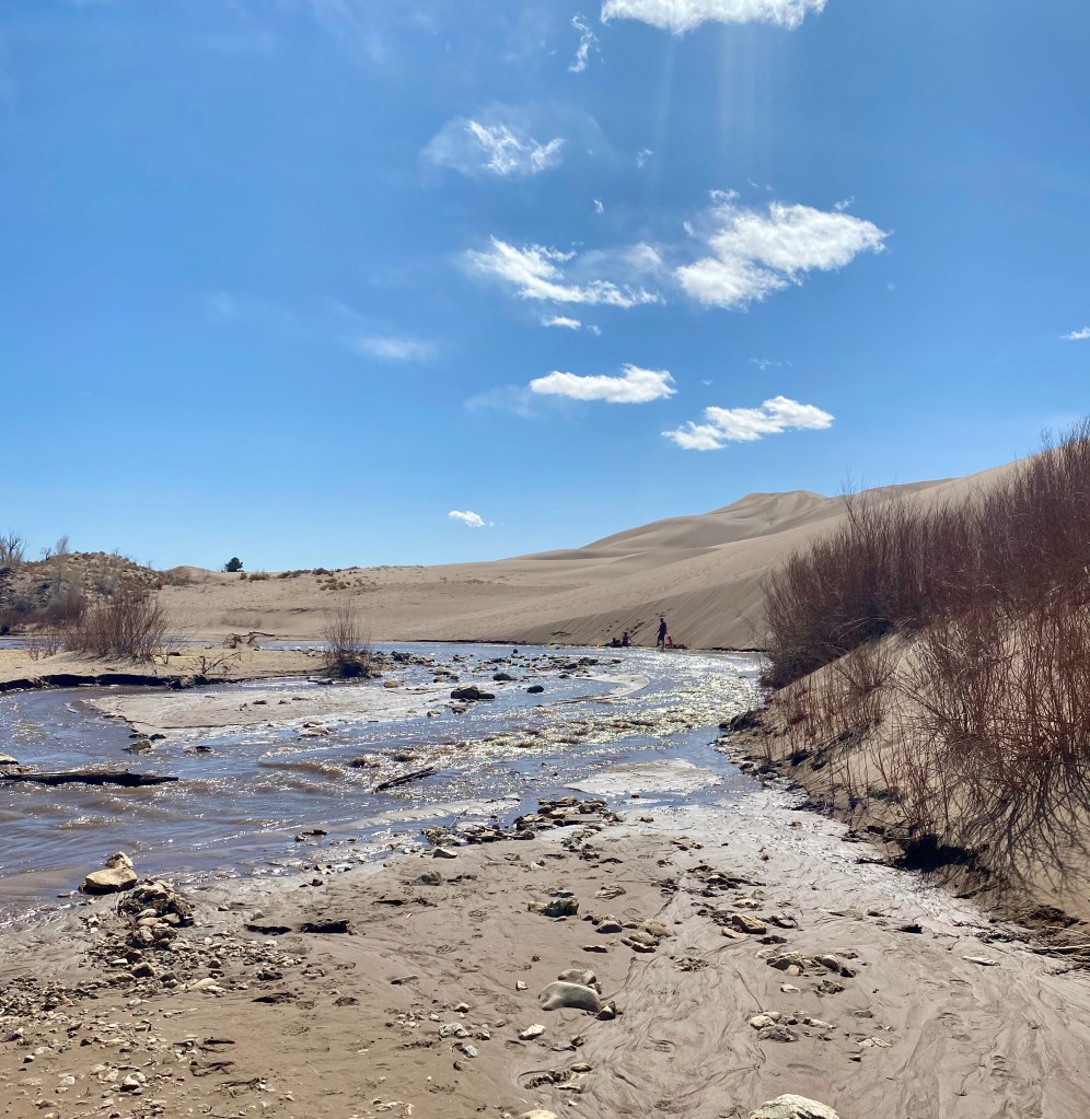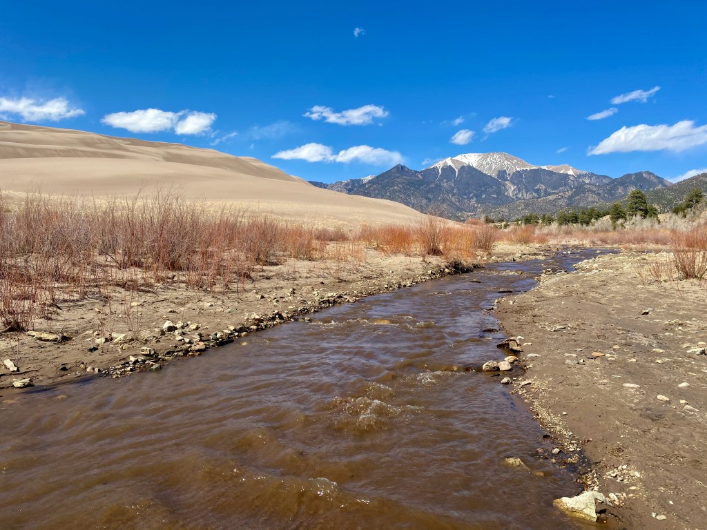 If you visit the Great Sand Dunes, be sure to visit sometime between April and June when the creek is flowing. The water is refreshing, especially when the sand is starting to get hot. When the snow melt is at its peak later in the spring, gentle, regular “waves” will come down the creek.