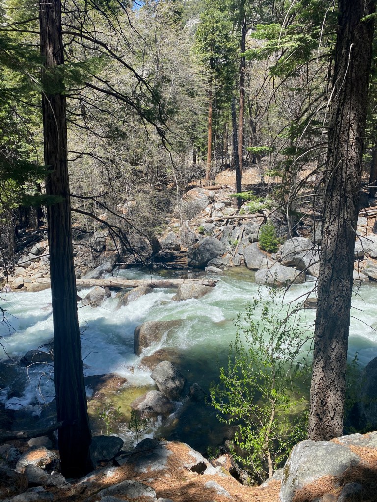 Further up the canyon, we enjoyed the views of the South Fork of the Kings River, with stops at Grizzly Falls and Roaring River Falls. At the end of the 30-mile Kings Canyon Scenic Byway, we enjoyed a restful time along the river on Muir Rock, where the naturalist John Muir would give talks on preserving the surrounding wilderness. Today the rock serves as a swimming hole. I was tempted to jump in, but the spring run-off water was too cold even for me!