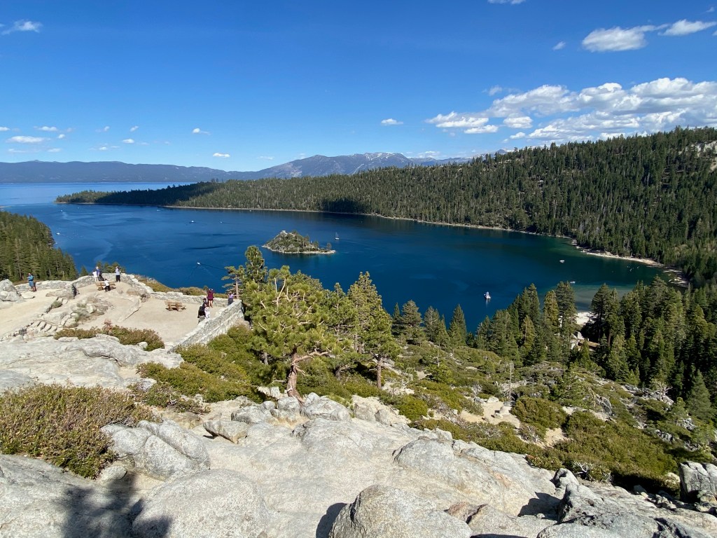 After we said goodbye to our friends, Elizabeth and I drove to the southwest corner of the lake to admire the views above Emerald Bay State Park. The bay is a mile wide and three miles long. It’s home to the only island in the lake, which features the remains of a tea house built at the top of the island by a wealthy land owner in the 1920s.