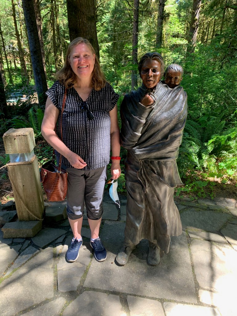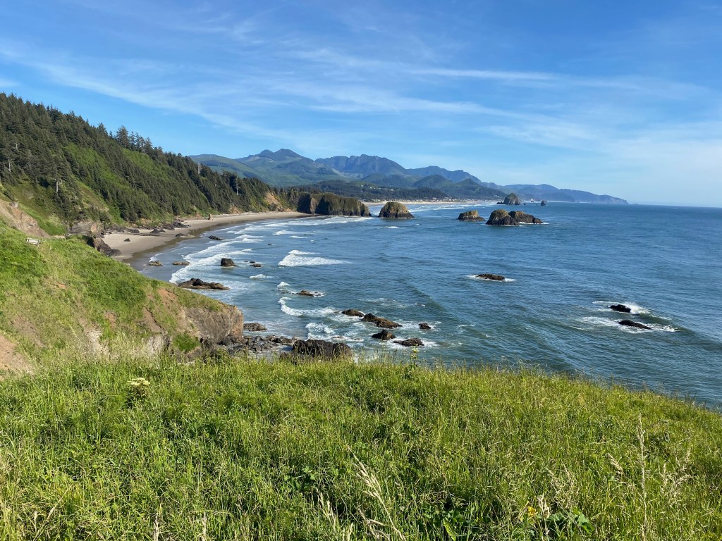On Saturday, we drove back across the Astoria-Megler Bridge into Oregon to walk on Cannon Beach and see the iconic Haystack Rock just offshore. Clark came to the beach during their time here to investigate reports from Indians of a huge beached whale. We then enjoyed the views from Ecola State Park and the Promenade in Seaside. It was wonderful to see throngs of people on the beach enjoying the sunny start to the Memorial Day weekend.