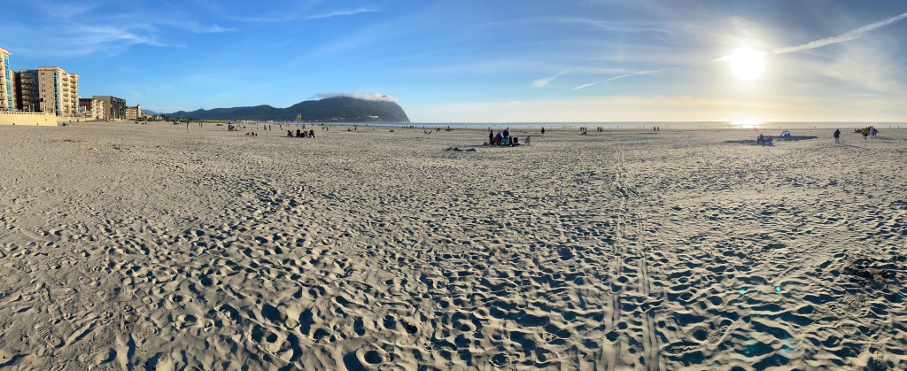 On Sunday afternoon, we drove the pickup truck for 13 miles up the beach from town. Regulations in Washington allow driving on the beach and even building fires. People were riding motor bikes and one family even brought their RV onto the hard-packed sand. Oregon likes to call their beachfront “the people’s coast” because it’s all publicly owned, but this also seemed to be the people’s coast because it could be enjoyed in lots of different ways by local residents. On a walk on the north end of the peninsula, Elizabeth spotted a bald eagle on a perch on one of the dunes overlooking the beach.