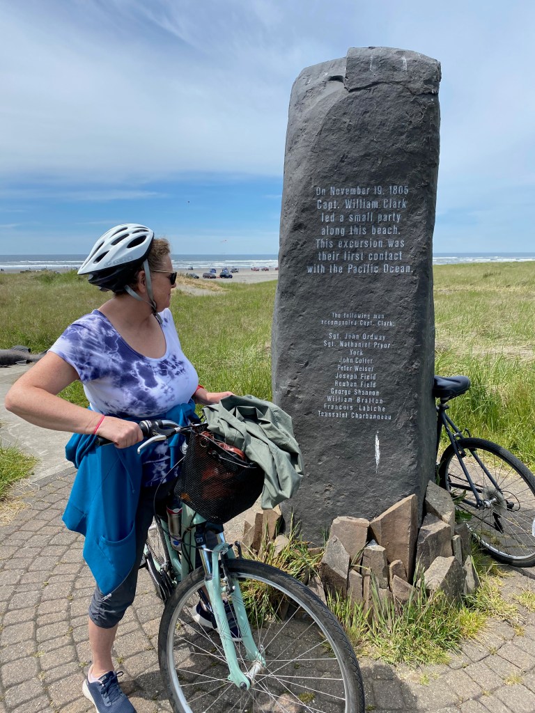 On Friday, we rode our bikes south for six miles along the Discovery Trail, a paved path that parallels the beach and also traces the steps of the Lewis and Clark expedition. A marker on the trail said this was the place in November 1805 where William Clark and a few of the men first reached the Pacific Ocean after their journey across the continent. The trail led us to the North Head Lighthouse built in 1898 to guide ships into the treacherous waters of the Columbia River.