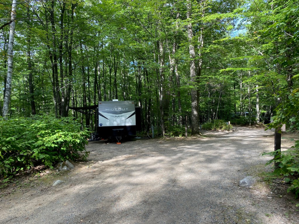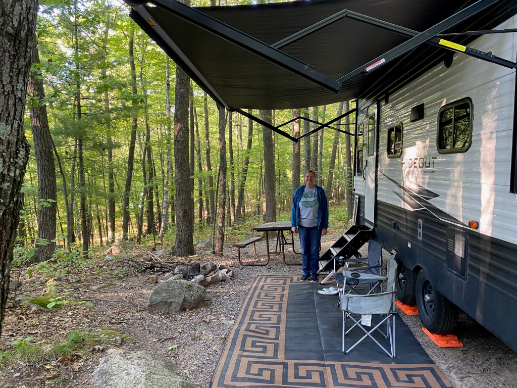 On the way north to Michigan, we stayed one night in a wooded campground near Rhinelander, Wis. It was a challenge to back the unit into a narrow space, but the reward was a secluded spot surrounded by forest. We built a fire in the pit that evening and shared a s’more.