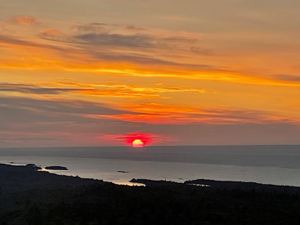 On our last evening in Copper Harbor, we drove along Highway 26 to the town of Eagle Harbor, where we walked the grounds of the lighthouse. Like many lighthouses, it was automated several decades ago. On our agenda that evening was to view the sunset from the top of Brockway Mountain, which lies between the two towns and rises about 700 feet above the lake. Our friend Herb Ford and his family had enjoyed a sunset picnic at the spot on a recent vacation and he highly recommend it. Alas, I miscalculated our timing and we just missed the main event. A friendly fellow saw we had arrived too late and shared his photos of the sunset via iPhone Air Drop.