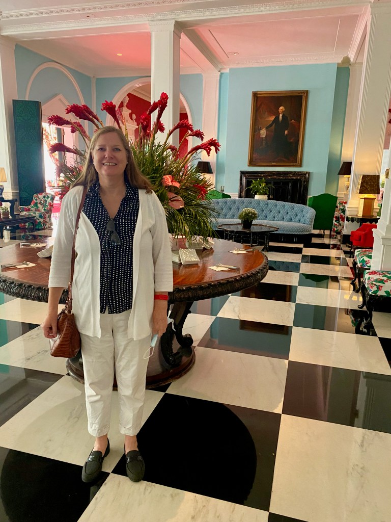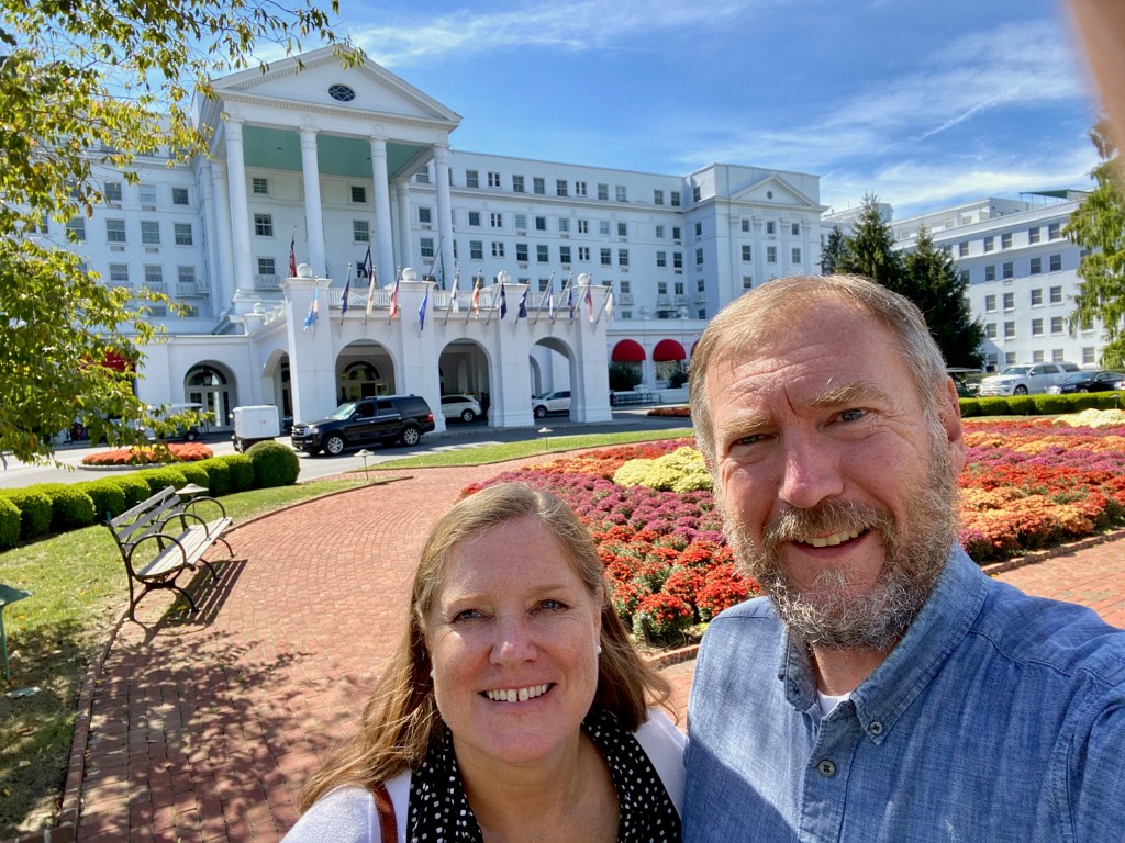 On Sunday afternoon, after attending a local church, we strolled the grounds of the Greenbrier in White Sulphur Springs. We’d never been to this famous resort even though we’ve lived next door in Virginia for more than 20 years. It reminded us of the Broadmoor Hotel in Colorado or the Grand Hotel in Michigan, but with a distinct southern decor and atmosphere. (Elizabeth is looking a bit too much at home in the photos, don’t you think?) When we stopped at the security gate to enter, one of the young men smiled when we said we we’re the Griswolds. This isn’t the first time on our trip that our surname has been a source of amusement!