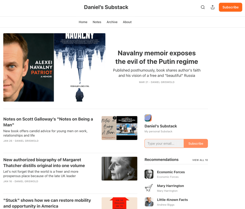 Another reason I haven’t posted lately is that I’ve established a new blog site on Substack, which I’ve cleverly titled “Daniel’s Substack.” (See a fresh screenshot of the page below.) Substack has become a popular blogging platform for discussing big and controversial topics. We’ve explored plenty of meaty subjects on this website, but it’s a bit of an island in cyberspace, while my blog site on Substack is more of a storefront in a bustling and growing city with a lot more foot traffic.