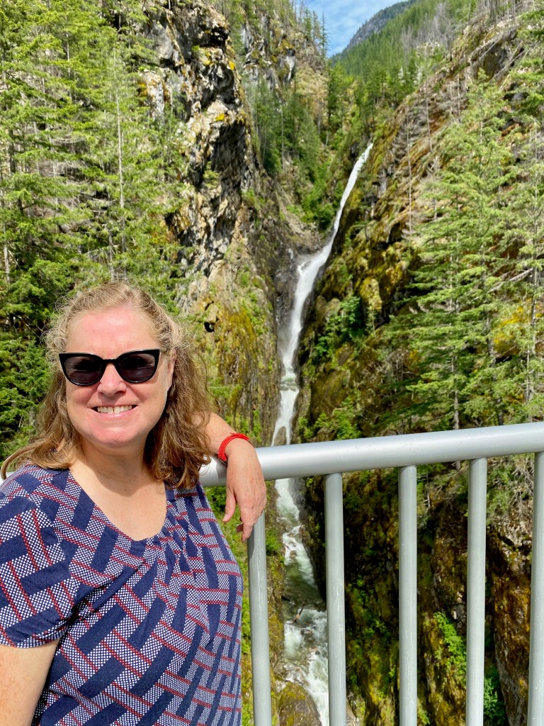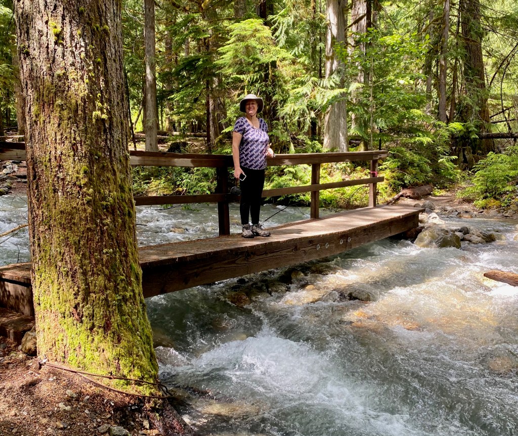 Slideshow below: 1) Looking at the spectacular Gorge Creek Falls on the way to Lake Diablo; 2) Crossing a creek on the way to Thunder Knob; 3) Our view of the Cascades from our lunch spot along the Thunder Knob Trail.