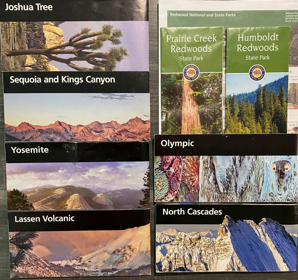 North Cascades marks the 16th national park we’ve visited during our four-month RV trip. Enjoying the parks has been one of the themes of our adventure. Some folks get a stamp in their national park “passport” every time they visit a park. We collect the official maps and brochures, which are typically very informative and useful. Here’s a montage of the official guides we’ve collected since we entered the Pacific Time Zone a couple of months ago.