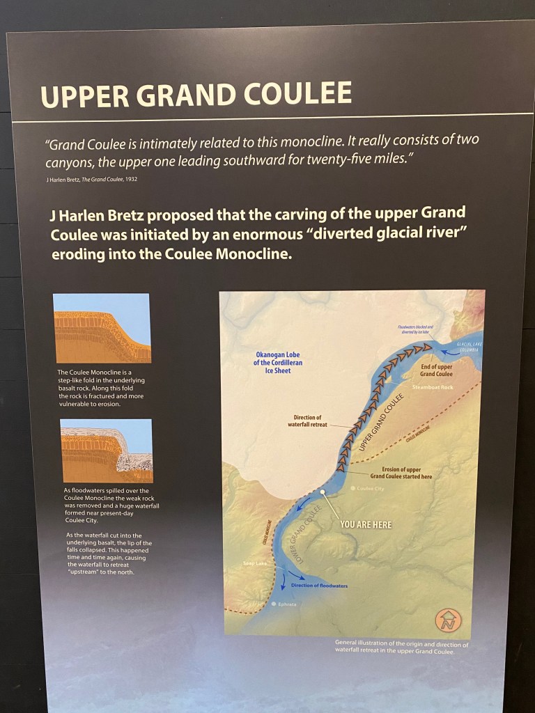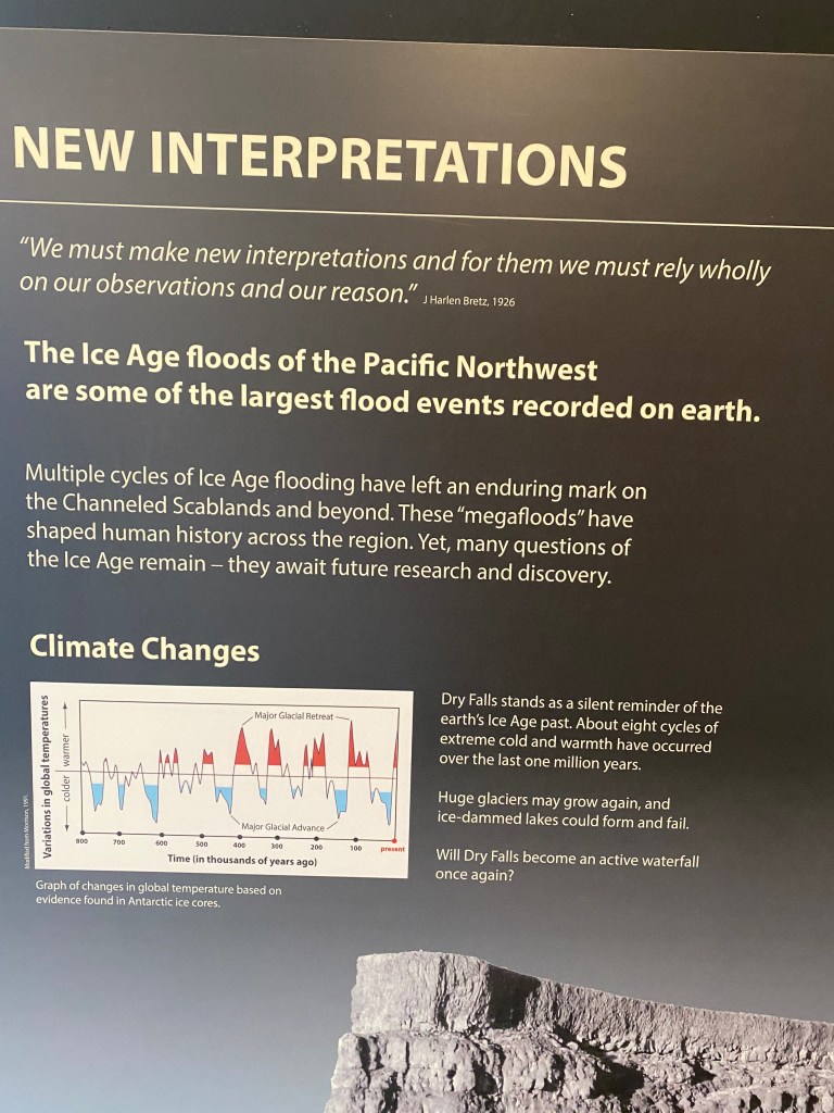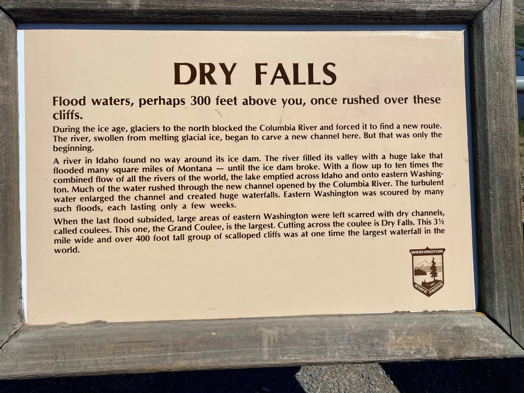 A good source of information for me was the website for the Ice Age Floods Institute. I also learned a lot from the panels at the Dry Falls Visitors Center: